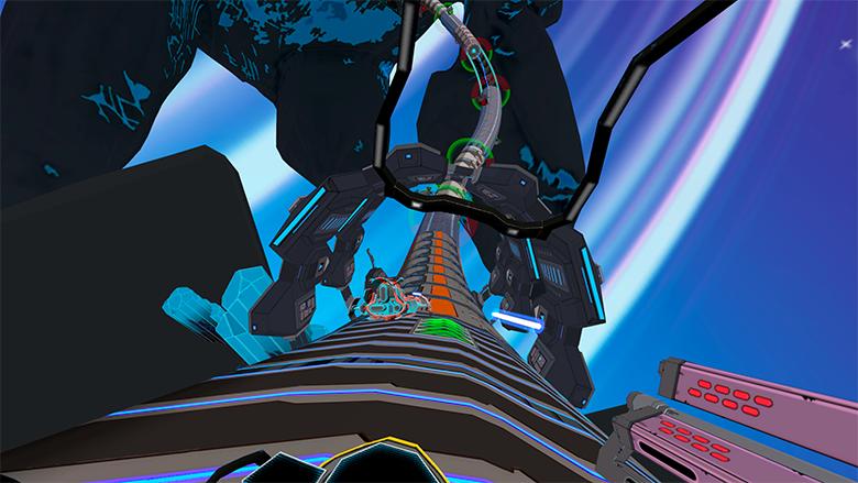 Despite the makeover, the gameplay itself is very familiar if you’ve previously played Radial-G. You race along the sides of giant tubes that twist and turn in every direction to eventually form a continuous loop. Because the track shifts in every direction you can imagine, this is an intense VR experience that’s not well geared to those people prone to VR motion sickness. The same was true for the PSVR (and Rift) version, so this should come as no surprise.