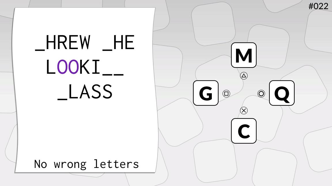 While the solutions are fun, the actual game element is a little lacking. Despite being based on hangman, there is no penalty for guessing the wrong letter, and without being limited to a certain number of wrong guesses it’s hard to feel too invested in your guesswork. The ‘puzzles’ also range from easy to hard, but the distinction feels a tad arbitrary now that the stakes are so low (though I’m sure the game would appreciate ‘low steaks’ a ‘hole lot’ better).
