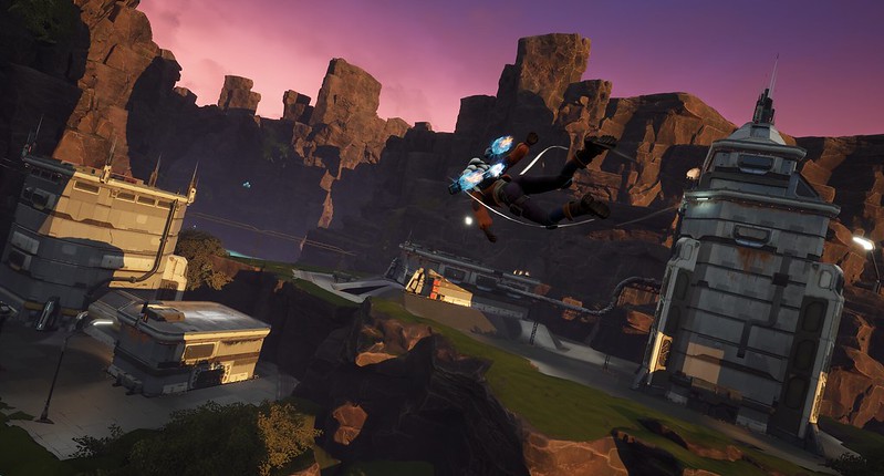 It’s a bit Avatar-like in its setup, and the story casts you as Esen, a young woman destined to rise up against the Coalition as part of the resistance, armed with an energy rifle and a jetpack. From there, although you can also walk, much of the action is airborne – with you flying, dodging and teleporting across each level in the game.