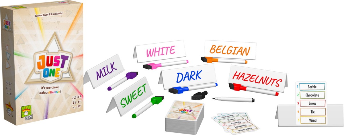 For a party game, Just One – published by Repos and designed by Ludovic Roudy and Bruno Sautter – is super accessible in that you only need three players to play, even though it can be played by up to eight players at once. And, much like many of the digitally-fueled Jackbox games, the concept for the game is word-based and as simple as it’s potentially hilarious.