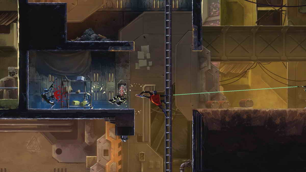 And yes, three arms. Aiden’s additional arm isn’t just a visual gimmick, it’s an integral part of the gameplay experience as well. Very early on, it lets you disarm (pun intended) enemies with shields, and through upgrades you’ll unlock more and more uses for your extra appendage. This adds a metroidvania-like element to the game as well, as functions like a grappling hook help you get to places that were previously out of reach – which also allowing you to pull enemies towards you in combat, Scorpion-style. The latter isn’t just brutal though, it’s also very helpful in breaking up a group of enemies by dragging one of them out and taking him on first.