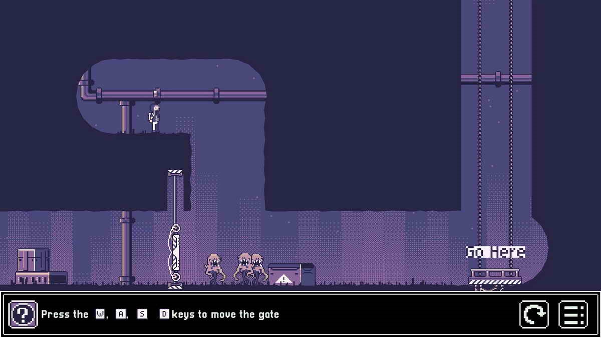 Even though this is a platformer at heart, levels are small, no bigger than a single screen. Gameplay is quite varied though, because the game doesn’t rely on a single mechanic. Instead, each level has a few interactive elements in it, and you must use there to overcome dangers and take out the enemies that stand in between you and the exit platform. Sometimes this means trapping them on a pressure pad that activates a small elevator, and at other times you’ll be clearing a path for yourself by draining the pool of acid that’s in your way.
