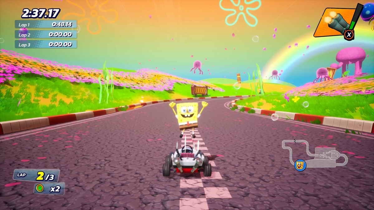 It’s nice to see that the series has evolved since we reviewed the first game in the series, adding more content and a number of new mechanics into the mix. You’ll have seen most of these in similar games already, but it’s an improvement to have track designs where there’s a bit more going on than there was in the past, with alternative routes and a few options to pull off cool-looking tricks. The controls could and should have been tighter though, as we played this shortly after playing Hot Wheels Unleashed and Nickelodean Kart Racers is way more floaty.