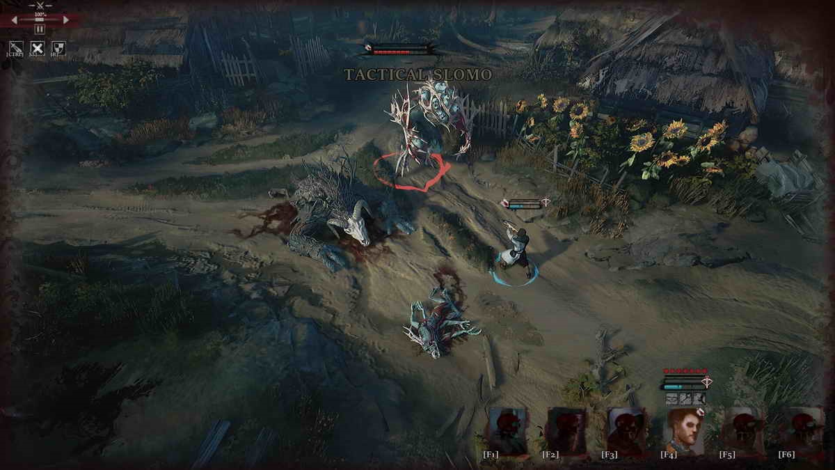The real-time tactical combat with a slow-motion mechanic emerged from our desire to create a battle system that feels both dynamic and tactical. We also wanted to overcome a problem that turn-based systems sometimes bring – long core loops, resulting from long combat encounters and very long single play-sessions, especially in endgame. These sometimes prevent you from playing a game in the evening, for example for one quick playthrough.