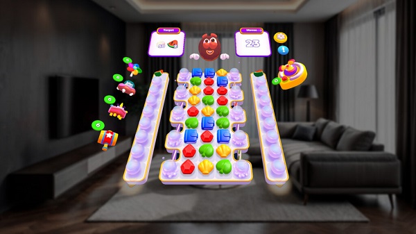 Visually, the bright candy-colored tiles and playful animations work well in AR, popping much more vividly than they do on a phone screen. The whimsical art style carries over into the decorative islands, giving you a reason to keep unlocking new areas. Audio-wise, it’s pleasant but low-key – designed more to relax than excite, which fits the overall vibe. If you’re looking for a hardcore VR game this isn’t it, but as a light and inventive way to enjoy a classic puzzle formula, Jolly Match 3 AR is one of the more charming examples of mixed reality design to date.