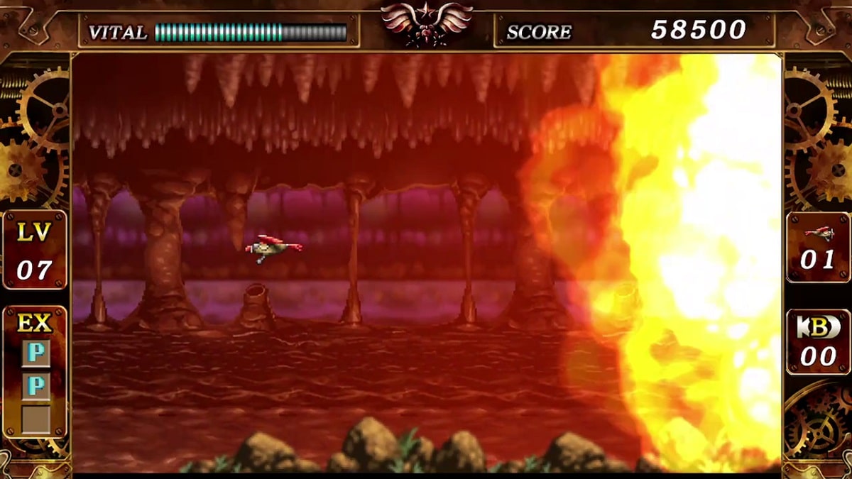 Gameplay is faithful to the euro-shmup blueprint with a few wrinkles that make each sortie feel tactical. Choosing between the nimble Striker and the lumbering, heavy-hitting Zeppelin forces real decisions about positioning and risk, and the forward/rear shooting scheme pushes you to manage both the sky and the ground rather than simply spray-cover the screen. Power-ups and screen-clearing attacks reward daring play and create satisfying moments of catharsis when a tight situation is turned into glorious chaos. That said, the game rarely surprises beyond its core mechanics; its loop is enjoyable but conservative, and the short campaign and lack of substantive modern extras mean longevity depends largely on whether you enjoy replaying stages for higher scores.