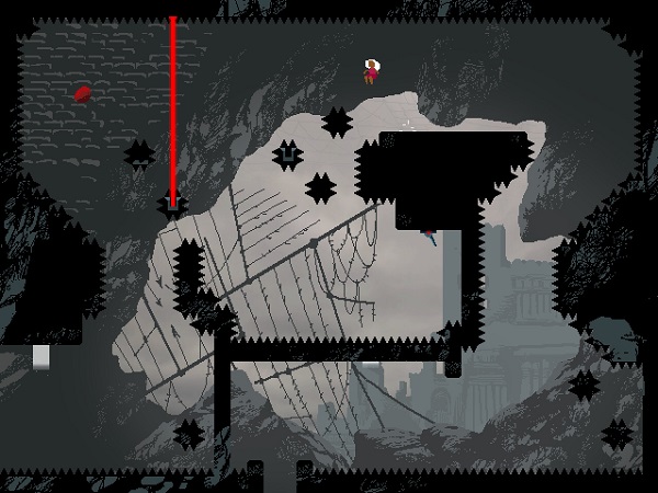 Mechanically, Love Eternal is astonishingly lean: run, jump, and flip gravity. That’s it. But what sounds modest on paper becomes something far more demanding in practice. Maya can reverse gravity once per leap, forcing you to judge every flip with mathematical precision. Red orbs that recharge your flip ability add an extra layer of choreography, turning rooms into delicate puzzles of momentum and timing. The control scheme feels tight and responsive throughout, a crucial foundation for a title that often punishes the smallest miscalculation with instant death. There’s a deep satisfaction in mastering these mechanics, and the game invites that mastery by never clouding your inputs with floaty controls or inconsistent physics.